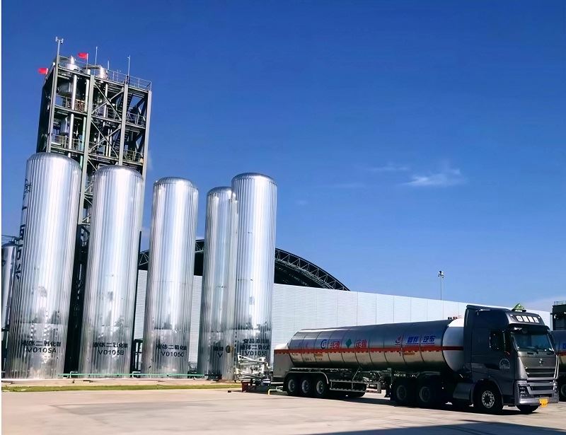 采用“全流程物理法”提纯,无化学反应,避免污染与杂质。分子筛脱水:选用高效吸附分子筛,精准除原料气水分,防后续设备低温结冰堵塞或腐蚀,保障工艺稳定运行;多级净化:经活性炭多级吸附、分子筛脱水工艺,深度脱除原料气中硫化氢等有害杂质和水分,确保产品达食品添加剂级纯度(≥99.98%)。精馏与低温液化:采用全精馏法与氨(R717)加压空气蒸发冷却液化技术,经活性炭和分子筛过滤除硫除杂、冰机系统冷却液化、两级精馏工序,高效分离二氧化碳与其他惰性、有毒气体及杂质,液化效率超95%。