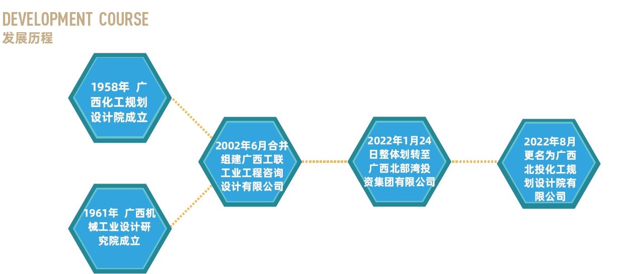 广西北投化工规划设计院有限公司是广西北部湾投资集团有限公司全资子公司,注册资本2000万元人民币。其前身广西化工规划设计院和广西机械工业设计研究院分别创建于1958年和1961年,是当时广西唯一的省级化工石化医药行业和机械行业甲级设计单位;20026月合并为广西工联工业工程咨询设计有限公司;2022124日,整体划转广西北部湾投资集团有限公司管理;20228月更名为广西北投化工规划设计院有限公司