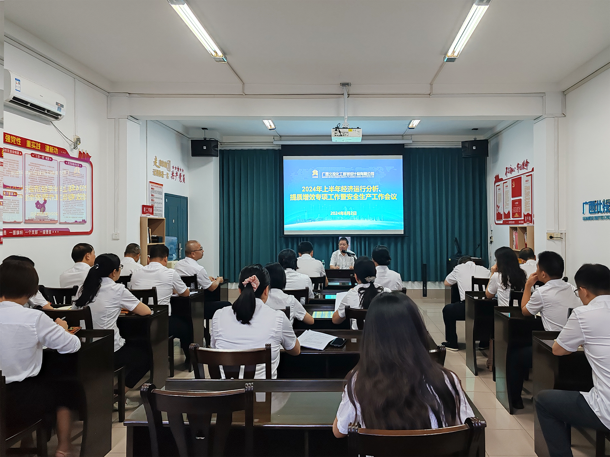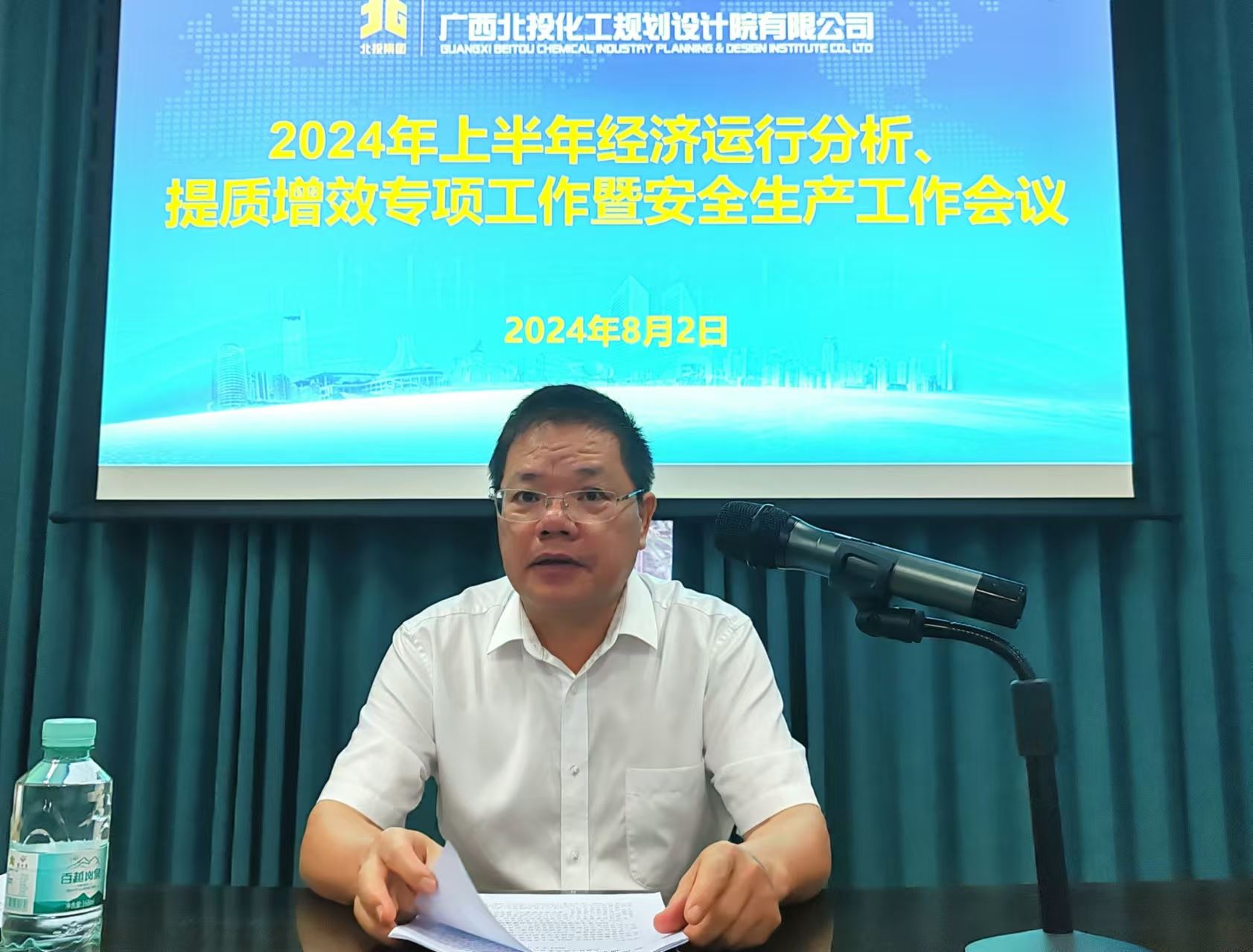 8月2日,广西北投化工规划设计院有限公司召开2024年上半年经济运行分析、提质增效专项工作暨安全生产工作会议,传达学习北投集团会议精神,总结2024年上半年经济运行、提质增效专项工作和安全生产工作情况。公司党委书记、董事长廖永光主持会议并讲话。