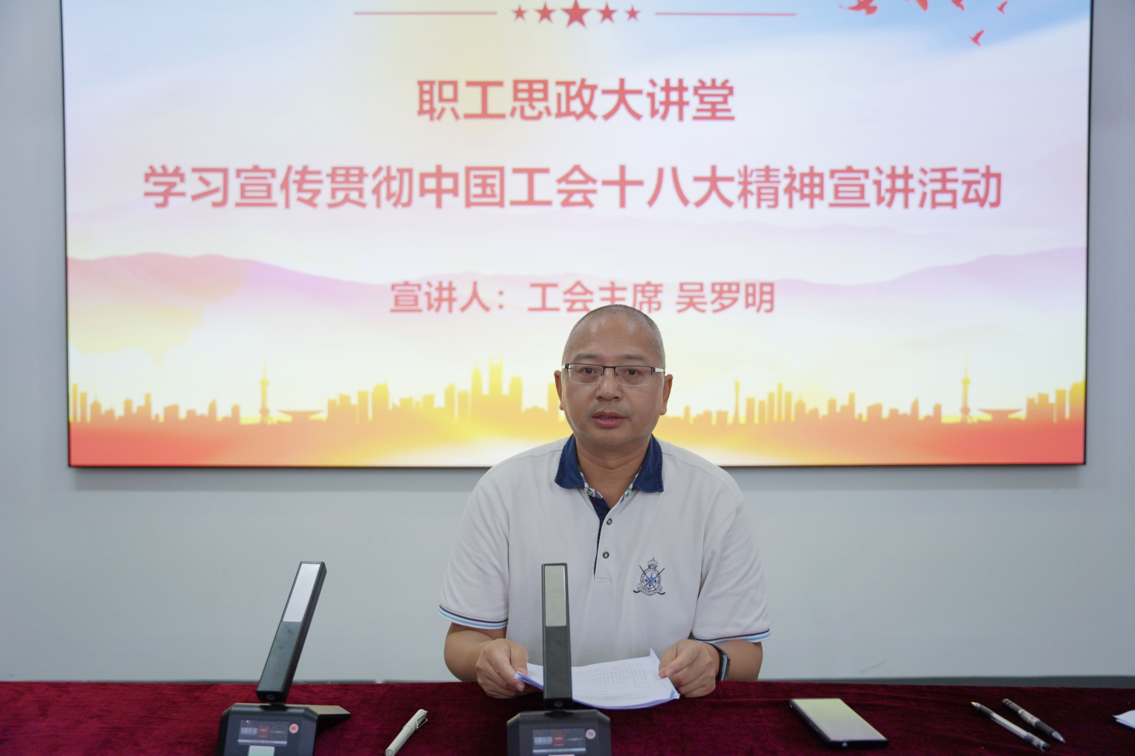 宣讲课上,公司党委副书记、纪委书记、工会主席吴罗明围绕习近平总书记关于工人阶级和工会工作的重要论述、中国工会十八大精神,结合公司当前面临形势和中心工作任务,以简明扼要的语言解读了中国工会十八大的政治任务、理论思想、实践意义和公司面临的挑战任务,使广大职工进一步树牢“四个意识”、坚定“四个自信”,做到“两个维护”,弘扬了劳模精神、劳动精神、工匠精神,激发了广大职工担当作为和干事创业的热情,现场学习氛围浓厚。