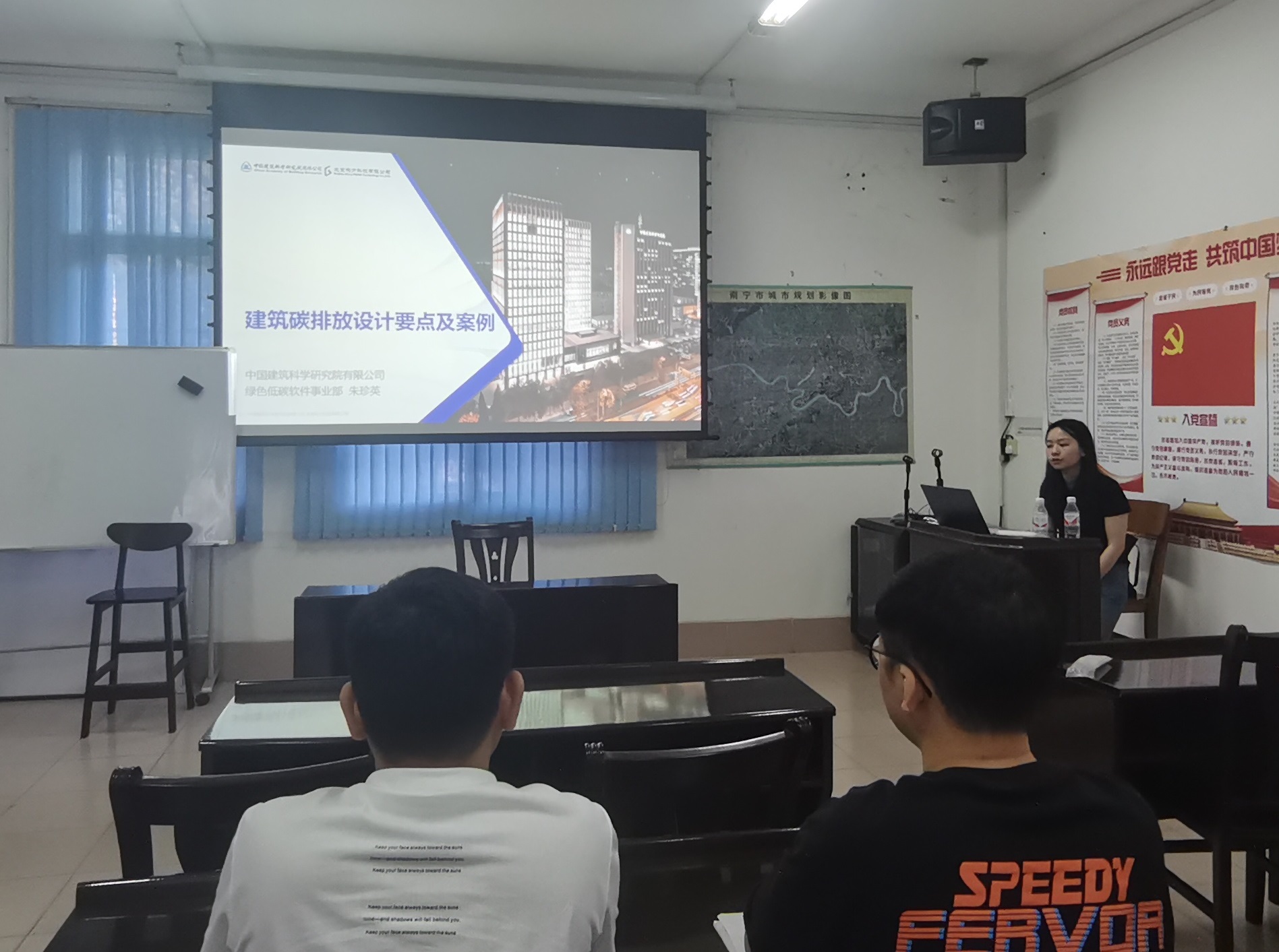 会上,朱珍英表示建筑领域碳减排是我国实现碳达峰碳中和的重要组成部分,运用实际案例,详解了《广西公居建建筑节能地标及建筑通规》、《建筑环境通用规范》、《广西及全国各省市碳排放政策及审查相关要点》,阐述了超低能耗、近零能耗建筑技术,以及零碳建筑、园区、城区技术体系应用。各设计师也结合工作实际针对绿色建筑设计具体问题进行了交流分享。